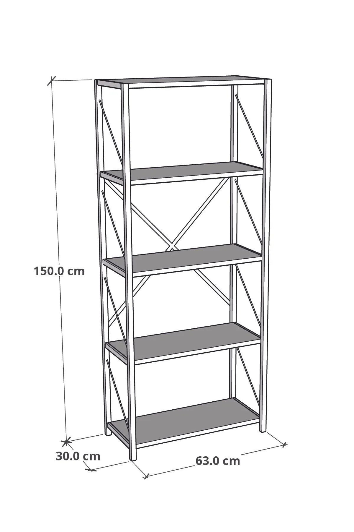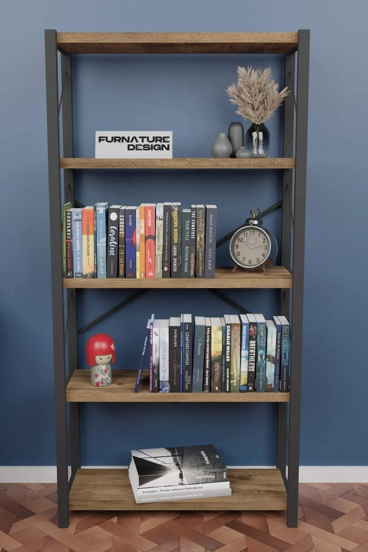 Metal Kitaplık 5 Raflı Dekoratif Kitaplık Atlantik Çam