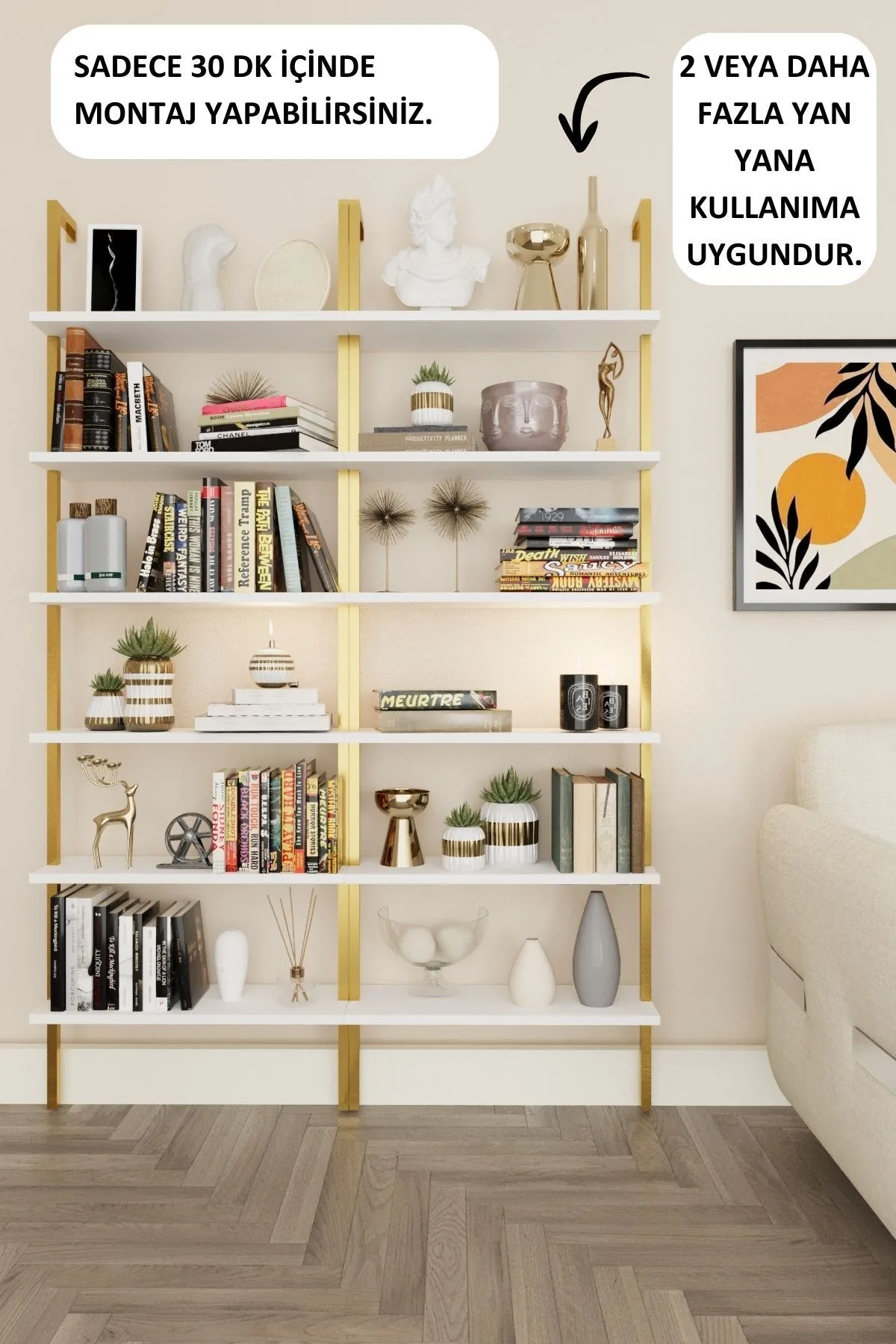 Yeni Gold Metal Kitaplık, 6 Raflı Duvara Monte, Beyaz Duvar Rafı Kitaplık, şıklığı ve fonksiyonelliği bir arada sunan mükemmel bir tasarımdır. ✨ 6 geniş rafı ile kitaplarınızı, dekoratif objelerinizi veya diğer eşyalarınızı düzenli bir şekilde sergileyebilirsiniz. 📚 Beyaz ve altın detaylı tasarımı, her türlü iç mekanla uyum sağlar ve modern bir atmosfer yaratır. 🏠 Duvara monte özellik sayesinde yerden tasarruf sağlar, böylece dar alanlarda bile mükemmel bir kullanım sunar. Hem estetik hem de pratik bir çözüm arayanlar için ideal! 💡