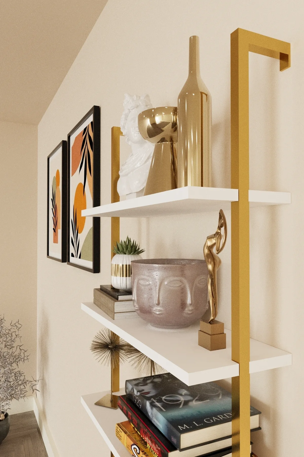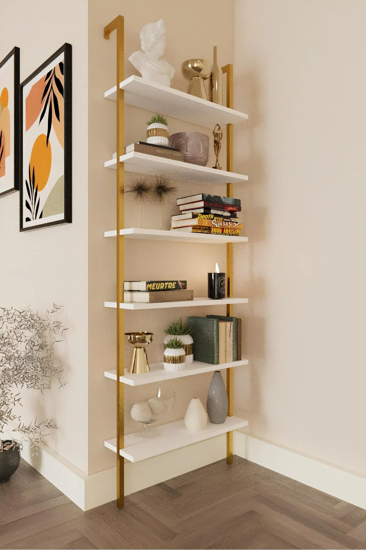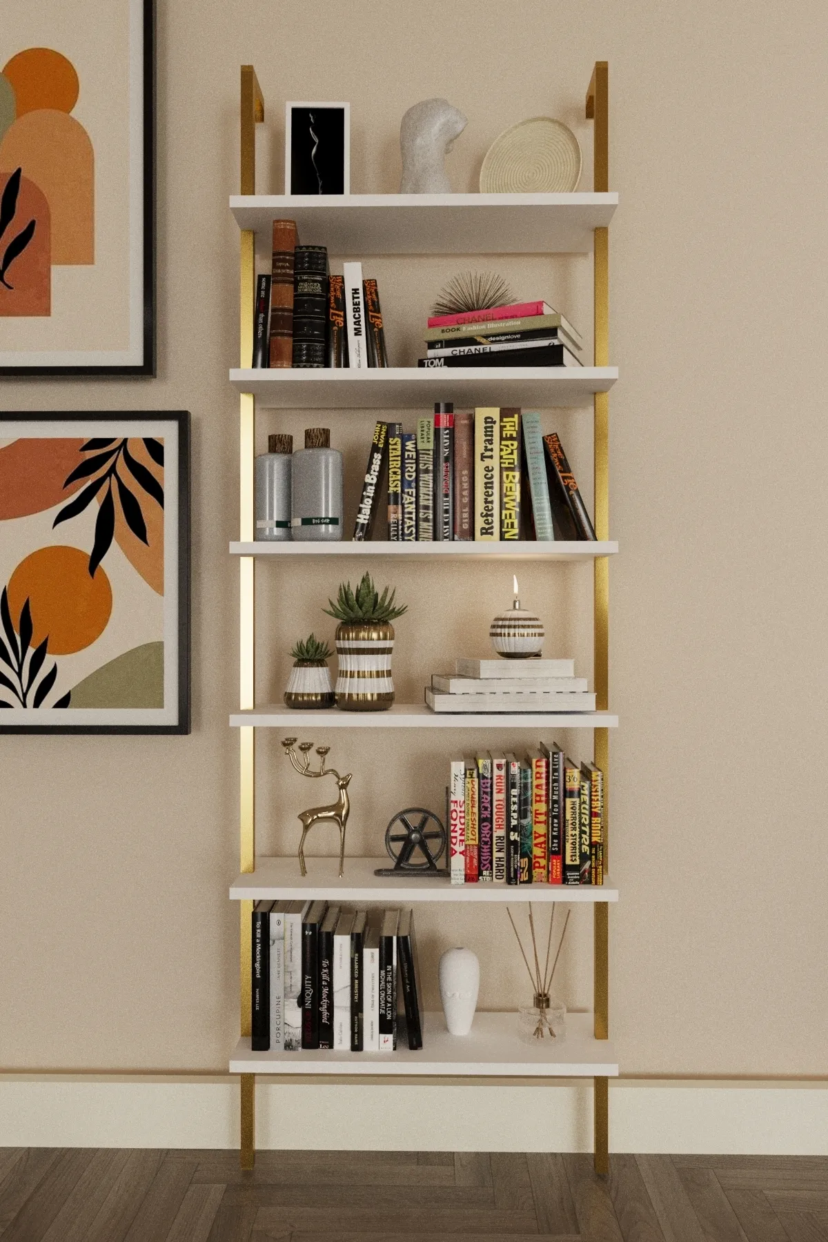 Yeni Gold Metal Kitaplık, 6 Raflı Duvara Monte , Beyaz Duvar Rafı Kitaplık, Mobilya